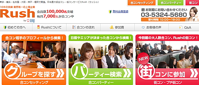 Rush(ラッシュ)は、簡単に手軽に利用できる婚活の手段として、日本最大級の合コン・街コンサービスを展開しています。